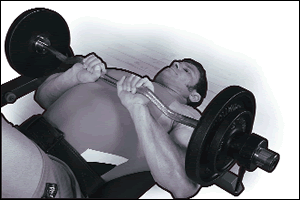 Очень хорошее упражнение. Видите ли, в чем дело: чем больший вес вы в состоянии использовать на тренировке, тем больший стресс вы задаете мышцам. В этом плане французскому жиму лежа сложно тягаться с жимом узким хватом, в котором некоторые спортсмены умудряются поднимать чуть ли не столько же, сколько в классическом жиме лежа. Но французский жим все же куда популярнее, и на то есть свои причины. Во-первых, жим узким хватом – реально тяжелое упражнение, и его предпочитают любители повозиться с очень приличными весами. Во-вторых, в этом движении задействована грудь, и порой грудные мышцы начинают забирать на себя львиную долю нагрузки. А у тех, у кого трицепсы отстают в развитии, мышцы груди, как правило, развиты «более чем», вследствие чего в «узком жиме» именно они тянут на себе почти все, оставляя трицепсы на заслуженном отдыхе. А попытки как-то дополнительно изолировать трицепсы за счет более узкого хвата на грифе приводят к тому, что начинают болеть запястья. Это, кстати, третья причина, почему многие сторонятся жима узким хватом. Тем не менее, польза от этого упражнения огромна, а потому его надо делать. Исходное положение – такое же, как и в предыдущем упражнении. Единственное, замечу, что ширина хвата штанги должна составлять 15-20 см (между кистями рук). Из него вы непрерывным движением опускаете снаряд вниз в район «обреза» грудных мышц, а затем за счет силы трицепсов возвращаетесь в исходное положение. После одного -двух разминочных подходов я рекомендую два-три рабочих с диапазоном повторений от шести до двенадцати.